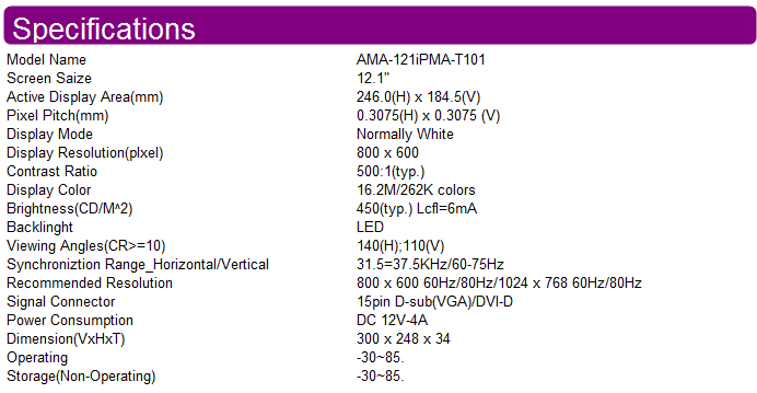 > 產(chǎn)品中心 > 工業(yè)顯示器 > 12.1寸工業(yè)顯示器